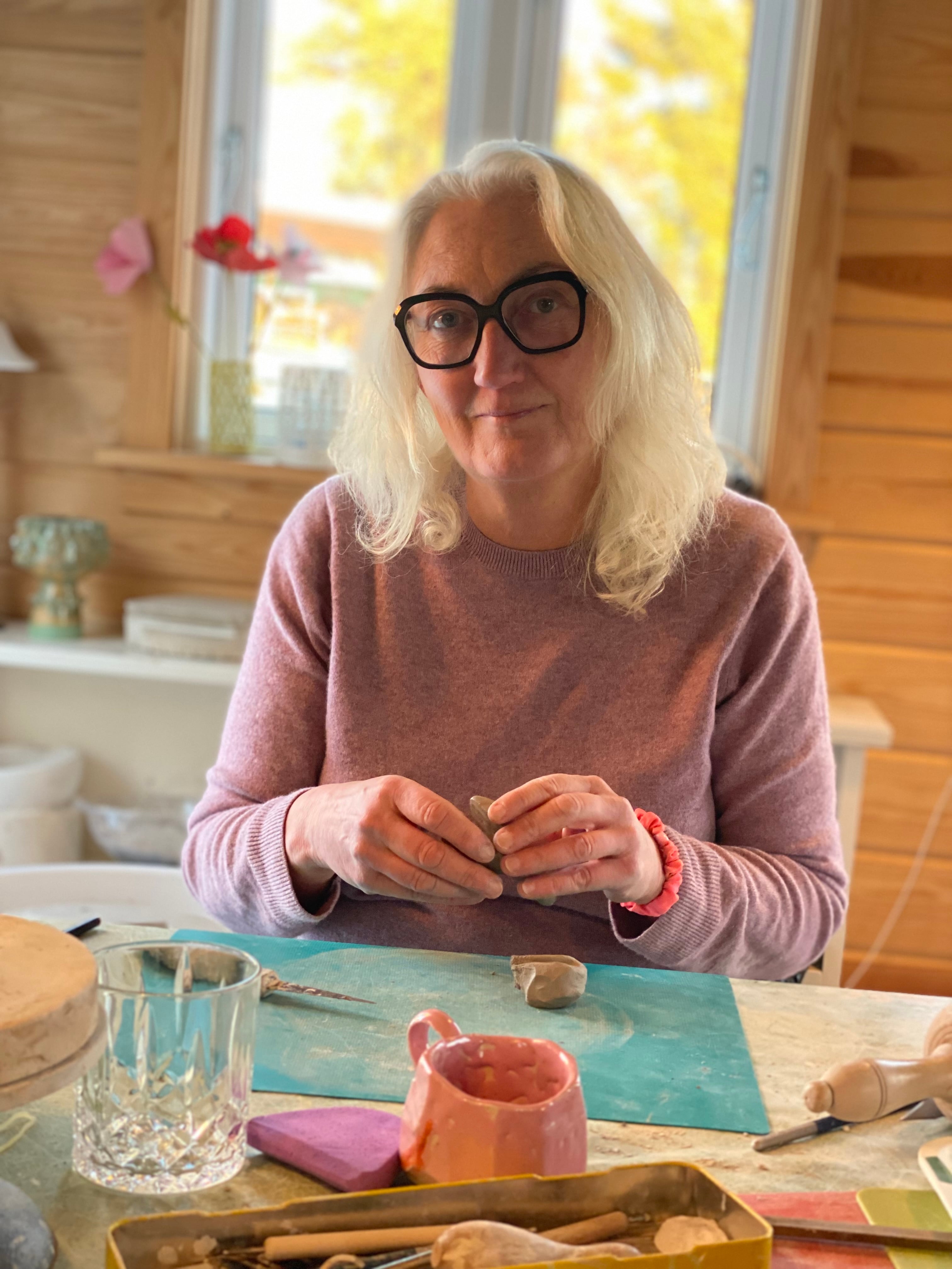 Porcelæns keramik er det også blevet til. Min kunstneriske udfoldelse er stærkt præget af min spirituelle udvikling gennem hele livet. Jeg har mediteret ca 50 år med forskellige teknikker men for tiden forsøger jeg bare at være til med hvad der nu byder sig..