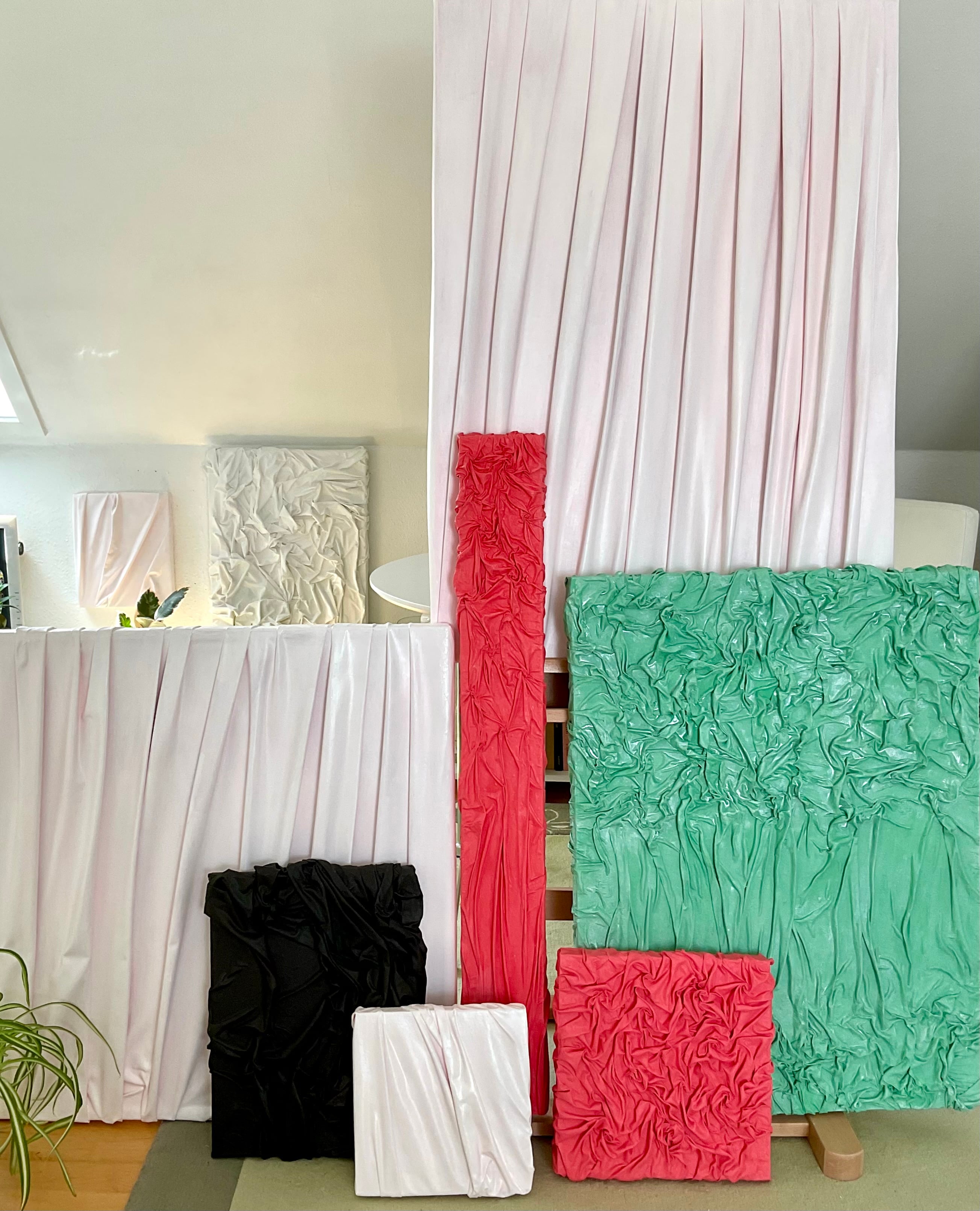 Det er vigtigt for kunstneren, at beskueren selv går på opdagelse i værkerne og nysgerrigt lader sig flyde med, og derfor er der ingen titler på værkerne.