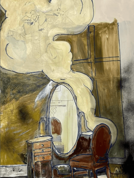 Janna Kirkebys billeder spænder over olie- og akrylmaling på lærred samt papircollager, hvor virkelighed og drøm smelter sammen i et personligt formsprog. Hendes motiver kan opleves som visuelle digte — de inviterer beskueren til at dykke ned i følelser, historier og symboler.